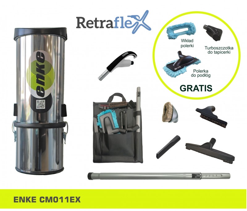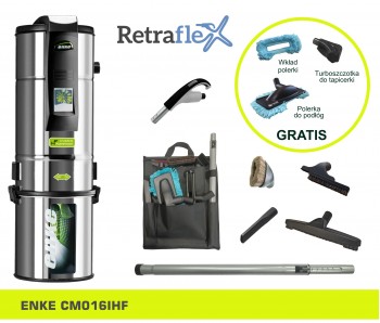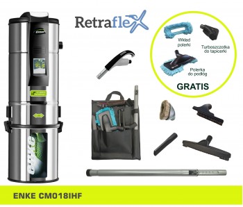 1. Jednostka centralna ENKE INOX CM018I (700 m2, 18 gniazd) 2.Zestaw do sprzątania Retraflex RF Premium: - rura ssąca teleskopowa, aluminiowa - uniwersalna ssawka do podłóg z włosiem naturalnym - rękojeść węża Retraflex - dwufunkcyjna ssawka do tapicerki - ssawka szczelinowa - ssawka okrągła z włosiem naturalnym - organizer na akcesoria CENA PROMOCYJNA: 6300,00 pln W zestawie promocyjnym turboszczotka do tapicerki, polerka do podłóg oraz wkład polerki GRATIS